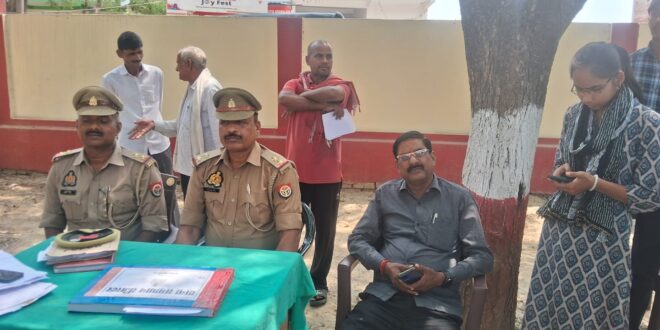 लालगंज आजमगढ़ । आजमगढ़ के मेहनाजपुर थाना परिसर में शनिवार, 28 मार्च को संपूर्ण थाना समाधान दिवस का आयोजन किया गया। इस दौरान कुल 8 मामले सामने आए, जिनमें से तीन का मौके पर ही निस्तारण कर दिया गया। मौके पर पहुंचे नायब तहसीलदार मनोज कुमार गिरी व थाना प्रभारी मनीष पाल ने समाधान दिवस पर सभी शिकायतों पर ध्यान दिया जिसमे ज्यादातर राजस्व का मामला रहा | तहसीलदार मनोज कुमार गिरी ने थाने पर सभी का निस्तारण करते ही तत्काल राजस्व के मामले मे मेहनाजपुर थाना के तियारा ग्राम सभा मे निस्तारण के लिए पहुंचे | जहाँ राजस्व के मामले को लेकर लम्बा विवाद चल रहा था | लेखपाल द्वारा तीयरा ग्राम सभा मे स्थित पंचायत सचिवालय के पास नजदीक स्थित मामले की जाँच की गयी | जिसका अभी तक निस्तारण नहीँ हुआ है | मौके पर दिनों पछ मे स्थिति नियंत्रण रहे जिसके लिए थाना प्रभारी मनीष पाल ने पुलिस बाल की भी तैनाती की |
